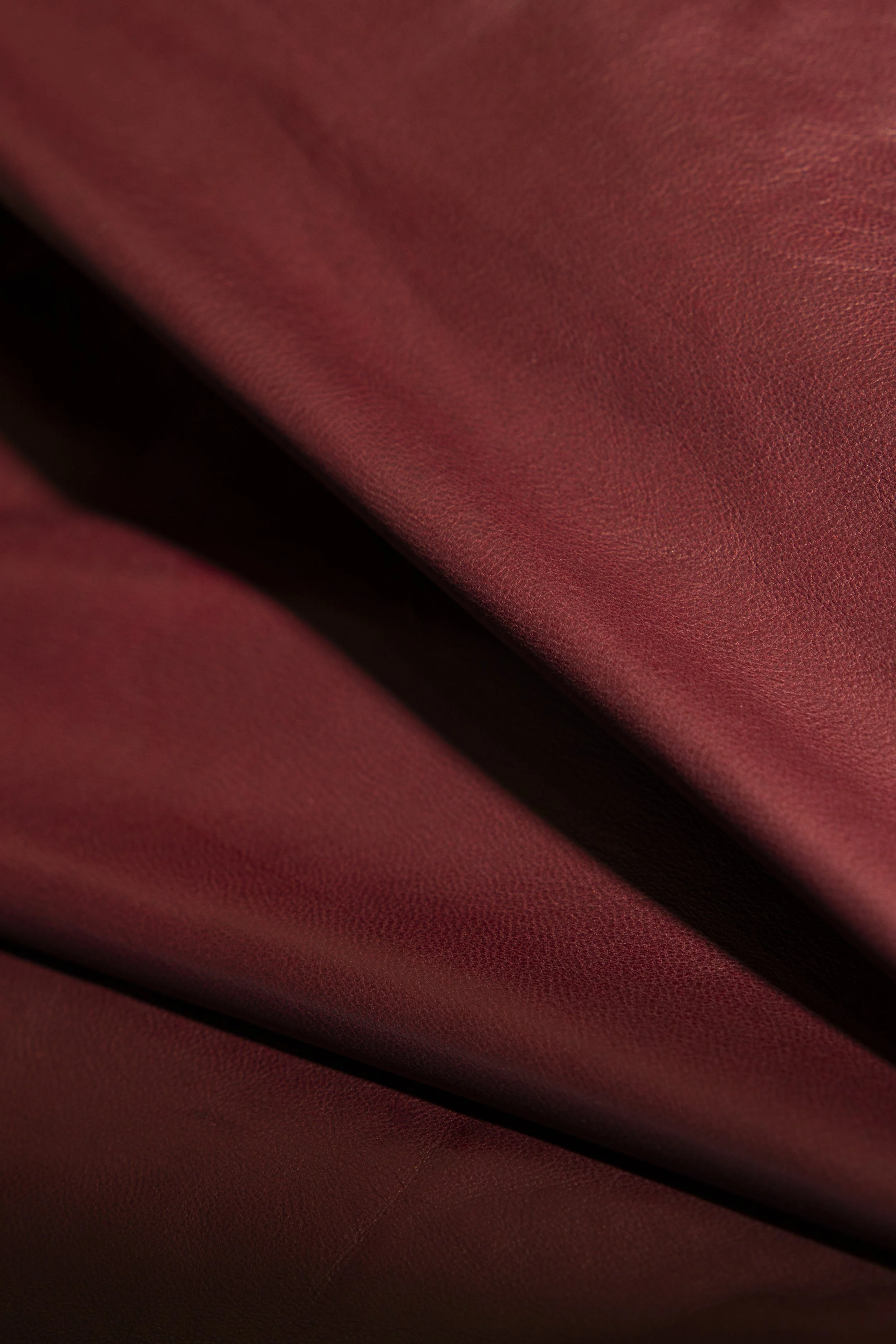 Our lightweight French foulard Leather is responsibly sourced from premium lamb, a by-product of the meat industry. Its lightness allows for a soft, fluid drape that enhances elegant silhouettes. This modern classic blends timeless appeal with a conscious and enduring approach to leather craftsmanship.